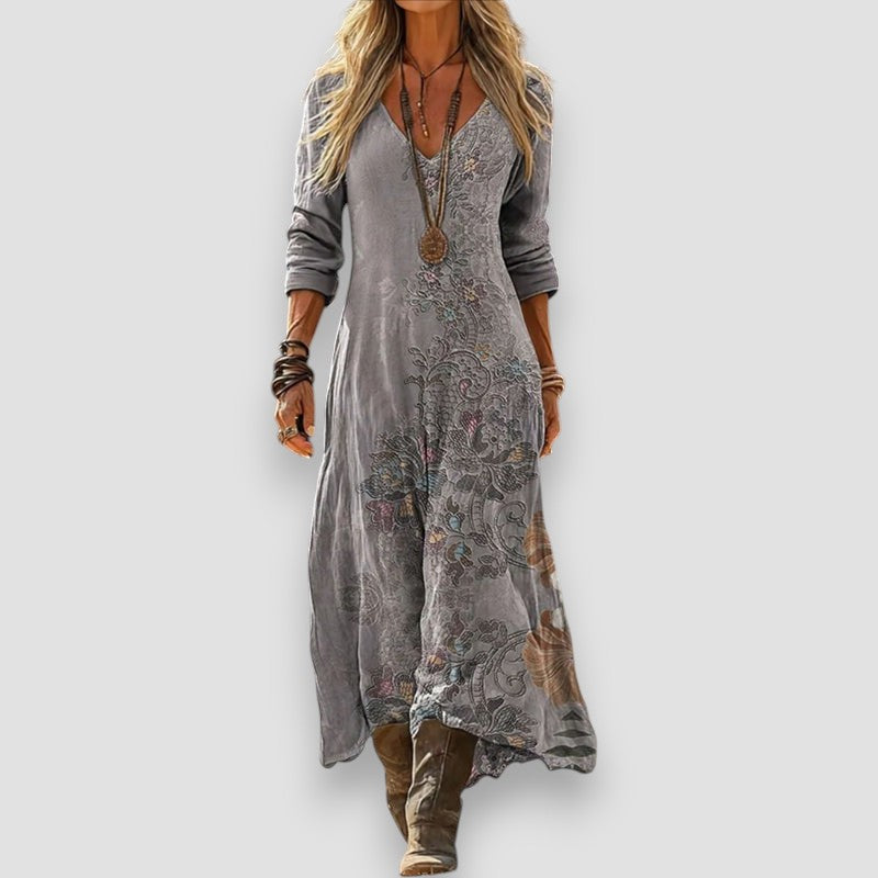 From peaceful afternoons to calm evening strolls, the Skye Vintage Floral Long-Sleeve Dress brings quiet elegance and effortless sophistication to every moment.